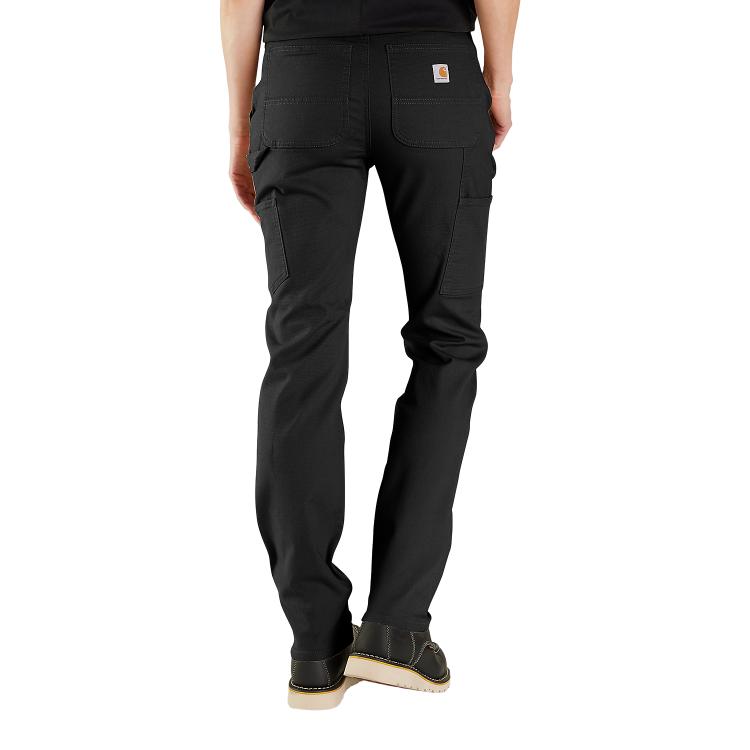 Disse arbeidsbuksene for kvinner er laget av robust Carhartt-canvas i mellomvekt med innebygd stretch og elastisk linning for god bevegelighet og komfort. De har flere lommer, inkludert en verktøylomme på benet. Den avslappede passformen sitter nær kroppen over sete og lår, samtidig som den gir rom for bevegelse.